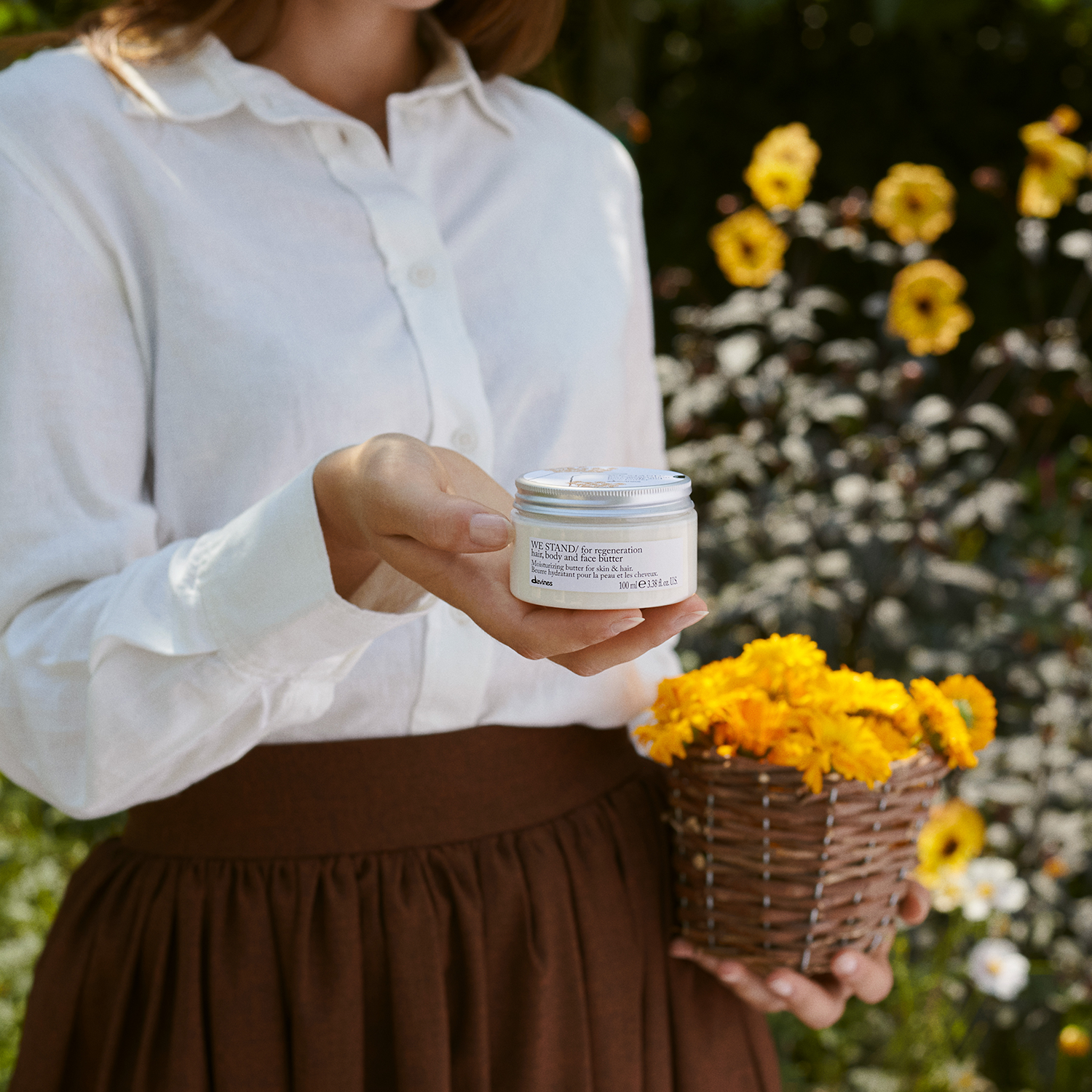 Vaše každodenní rozhodnutí o kráse mají vliv. Naše limitovaná edice másla na vlasy, obličej a tělo je z 93,25 % přírodní a z 85,5 % biologicky rozložitelná. Obsahuje měsíček lékařský, naši první regenerativně organicky certifikovanou aktivistickou® složku, která je vypěstovaná v Evropském regenerativním organickém centru v italské Parmě. Díky tomu pomáhá bojovat proti klimatickým změnám a zároveň pečovat o vaši krásu. Najděte ho ve svém Davines salonu: